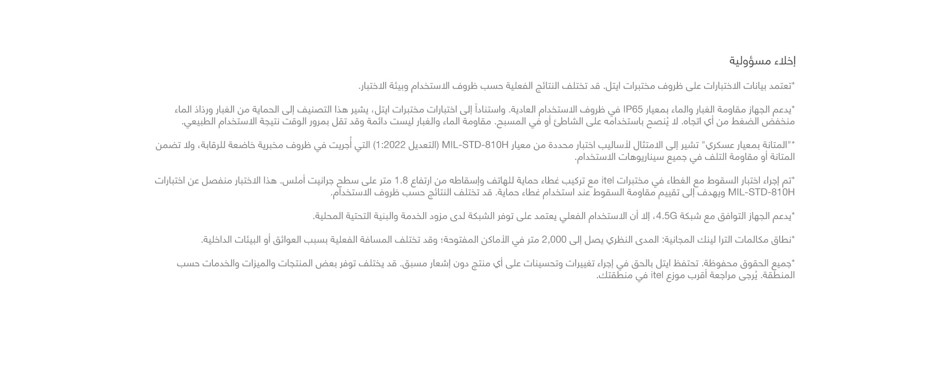 يتميز هذا الجهاز، المصمم ليدوم طويلاً، بحماية من الغبار والماء وفق معيار IP65 ومتانة وفق معيار MIL-STD-810H ضد درجات الحرارة القصوى والاهتزاز والرطوبة والصدمات.