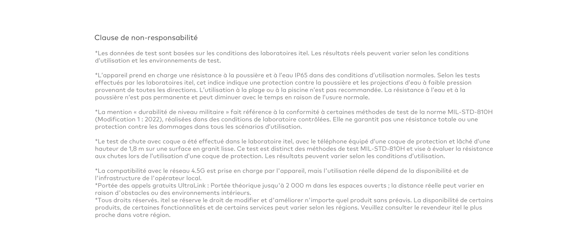 Résistance aux chutes de*